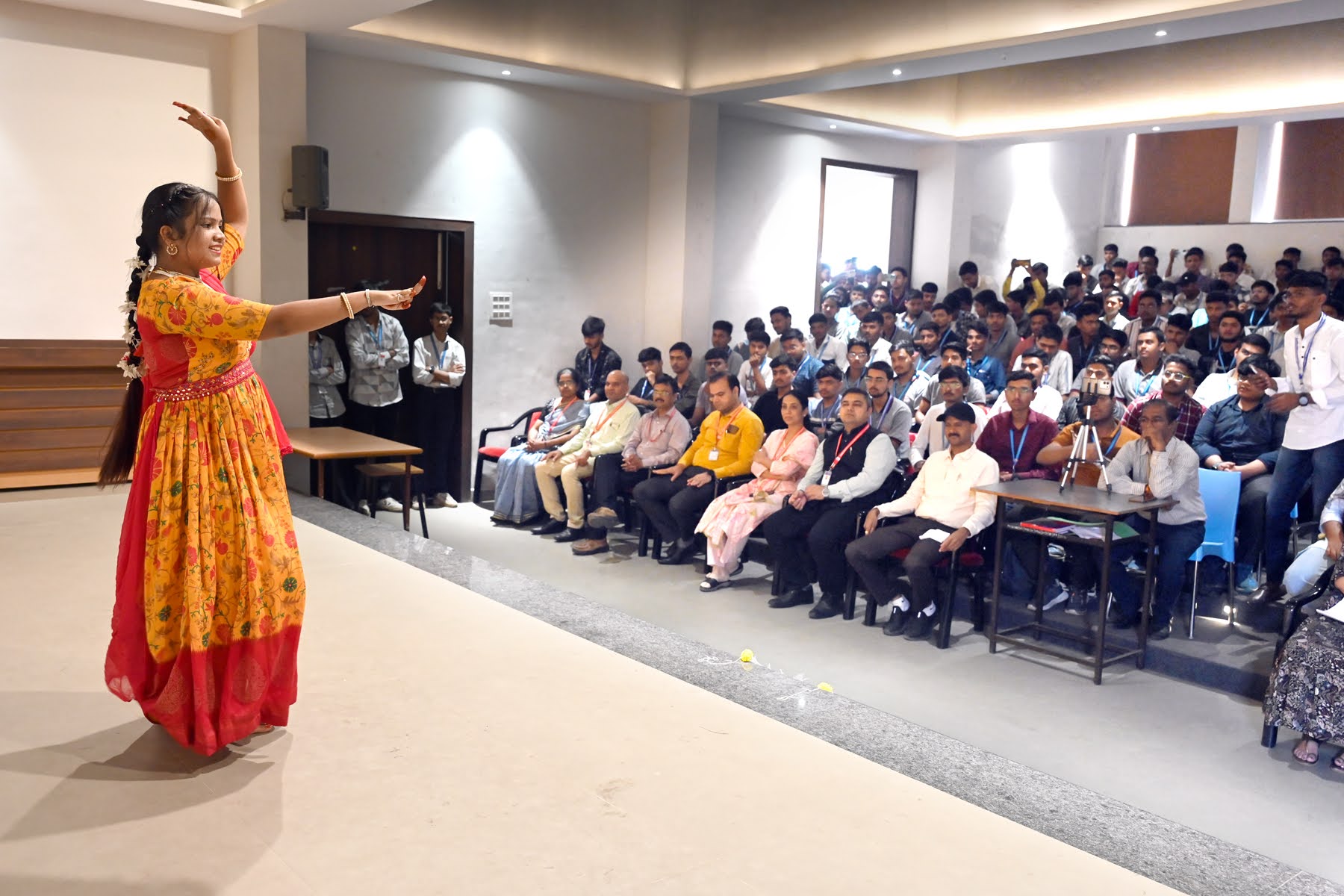 Department of First Year Engg. had conducted one week Student’s Induction Program, with the aim to make newly admitted students comfortable and create bonding among students and faculty, to set a healthy daily routine and develop awareness, sensitivity and understanding of the self, people around them, society at large, and nature. Various sessions during the program were about meditation, pranayam and suryanamaskar, human values, gender equality, personality development, English speaking etc.